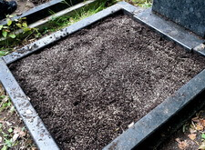 Далее повторяем процедуру посадки. Так выглядят могилы на промежуточном этапе работы: семена распределены в цветниках, но ещё не засыпаны новым слоем земли.